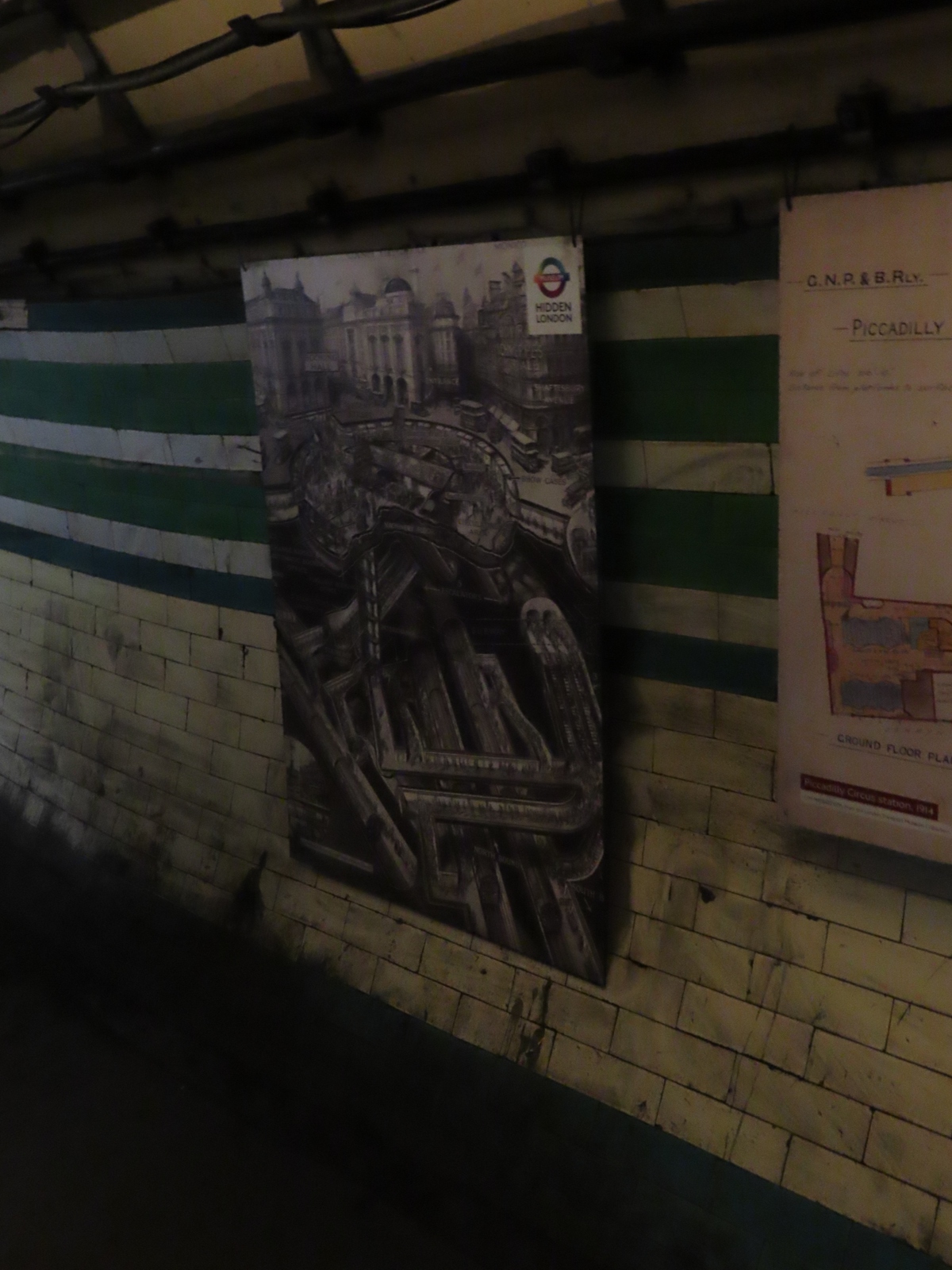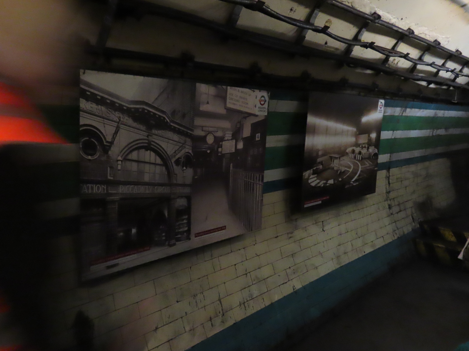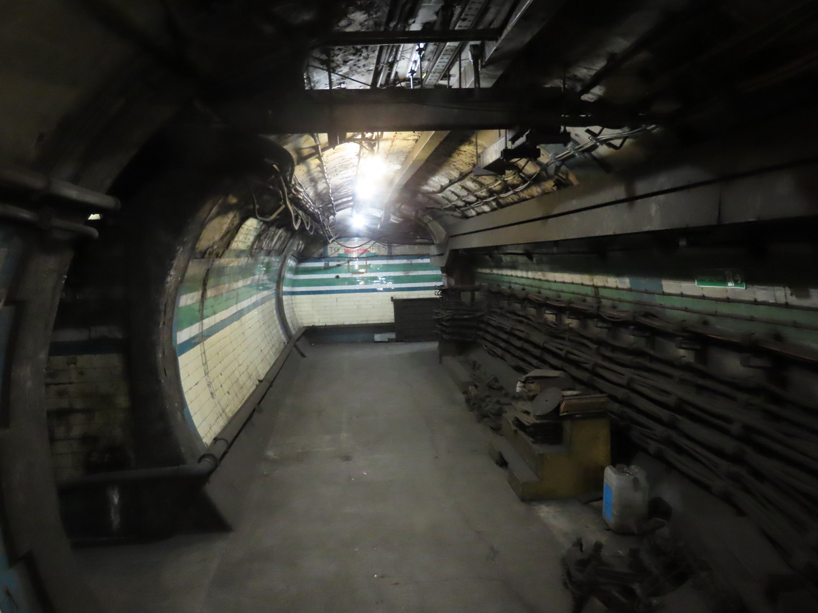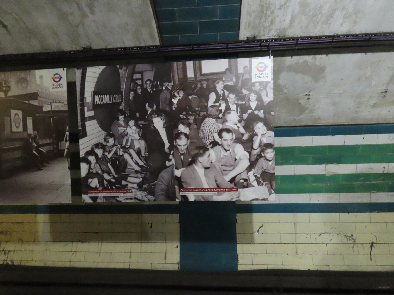 The adjacent photographs showed people using the station as a makeshift air raid shelter. This passage was, itself, used for such a purpose.