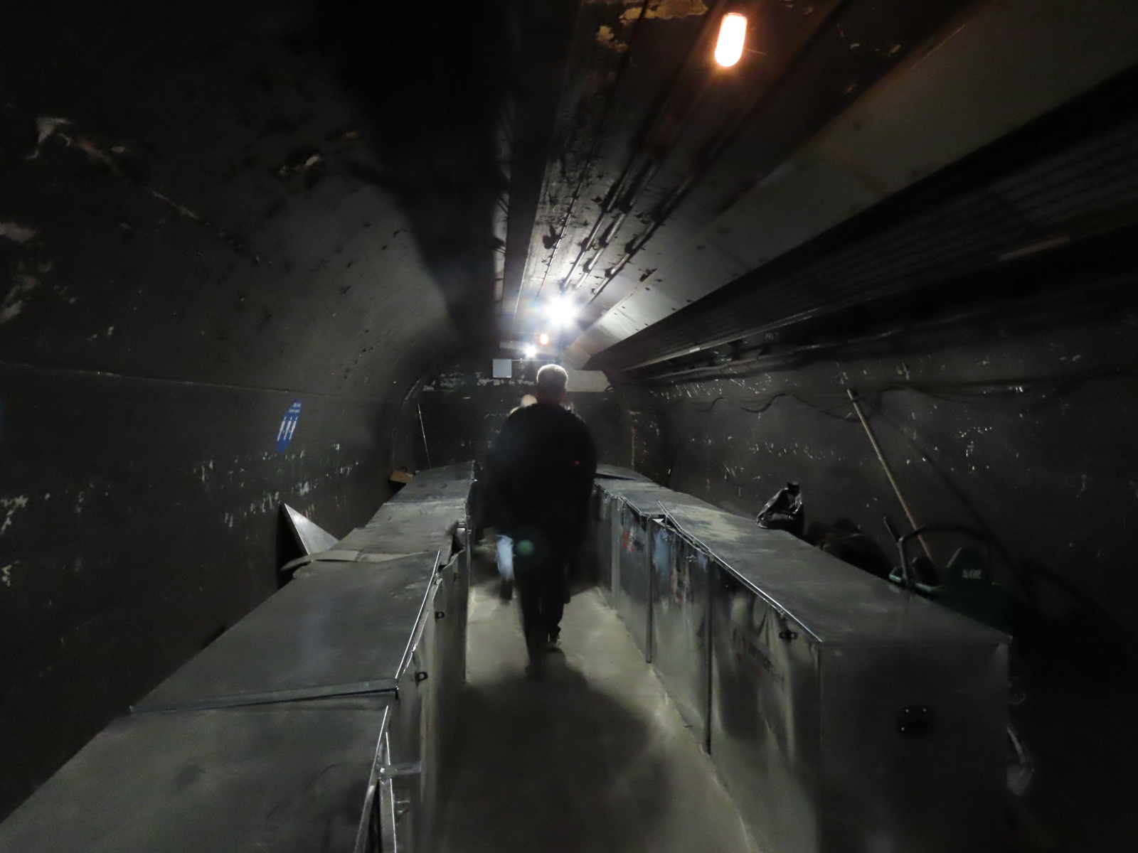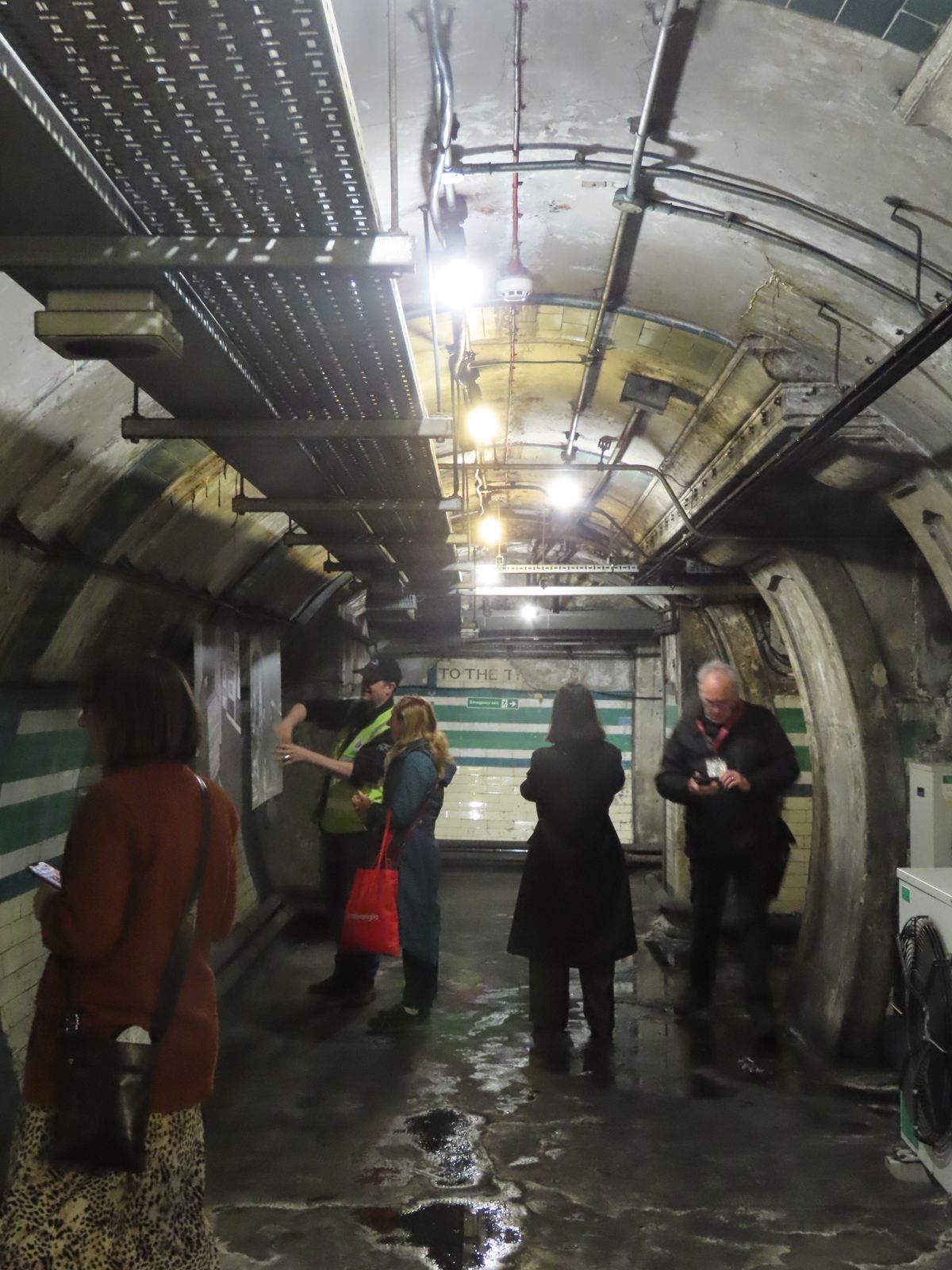 After being led along one of the Bakerloo line platforms, we were directed through a grille door near the end that was built as a passageway between the lifts and the platforms, but became used as a ventilation shaft after the 1929 station remodelling.