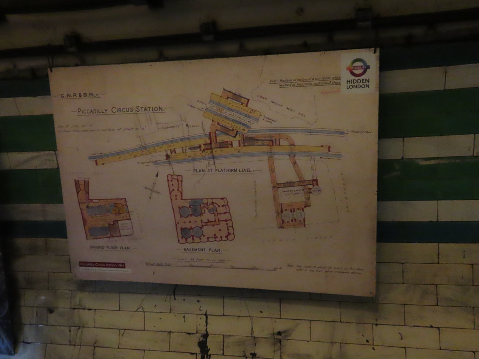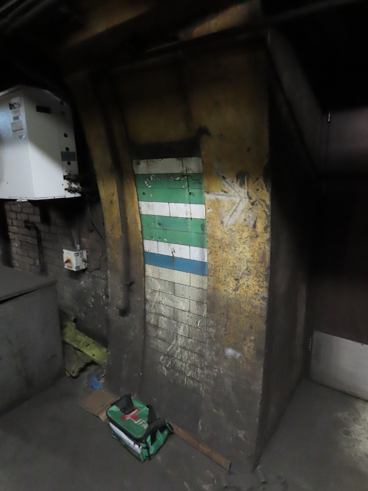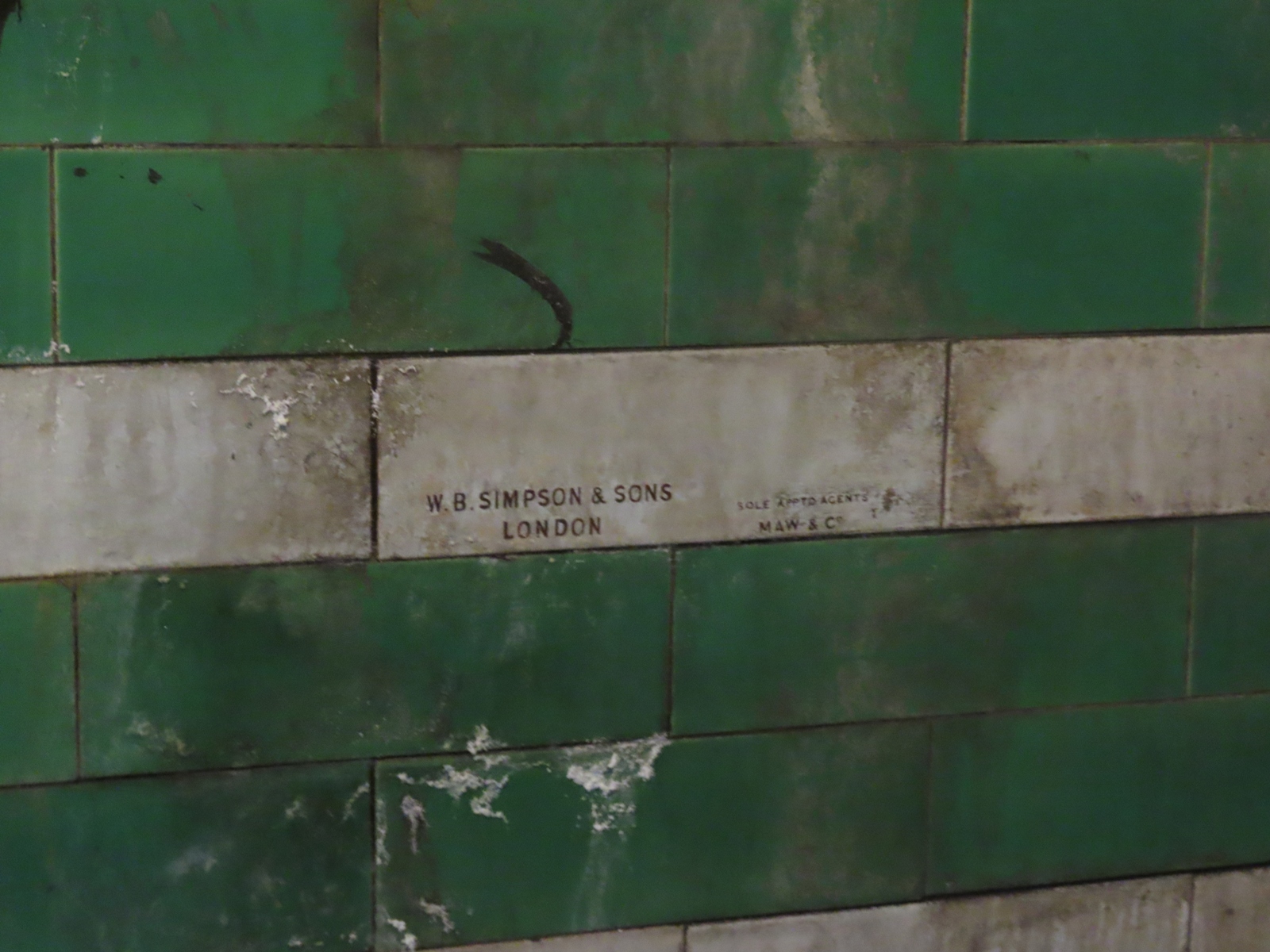 Examples of the Leslie Green tiling pattern were still extant on the passageway walls.
