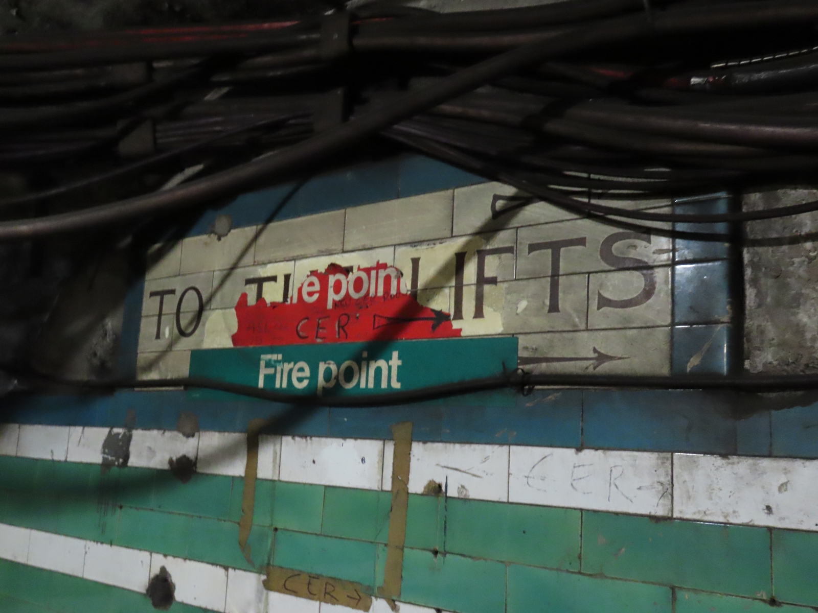 This tiled sign would have directed passengers wishing to leave the station to the lifts.