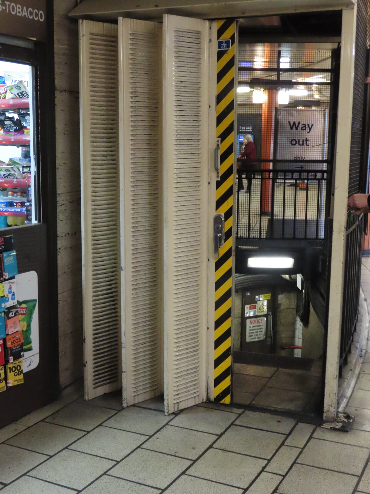 Nearby, one of the two former lift shafts serving the Piccadilly line platforms remained accessible.